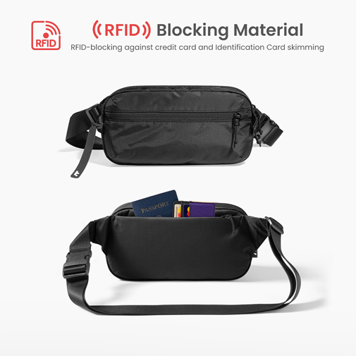 RFID zaštita: Ugrađena RFID blokada sprečava neovlašćeno skeniranje i krađu podataka sa kartica i pasoša.