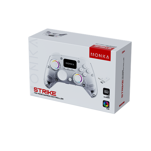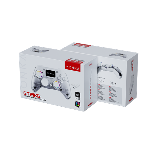 MONKA Strike je svestrani gejmped sa tri načina povezivanja (USB, Bluetooth 5.3 i 2.4G), dizajniran za stabilan i precizan gejming na PS4, Nintendo Switch, PC i mobilnim uređajima. Opremljen 6-osnim senzorima, izdržljivim džojsticima, 3.5 mm audio priključkom i snažnom 1000 mAh baterijom, pruža pouzdano i udobno iskustvo čak i tokom dugih gaming sesija.